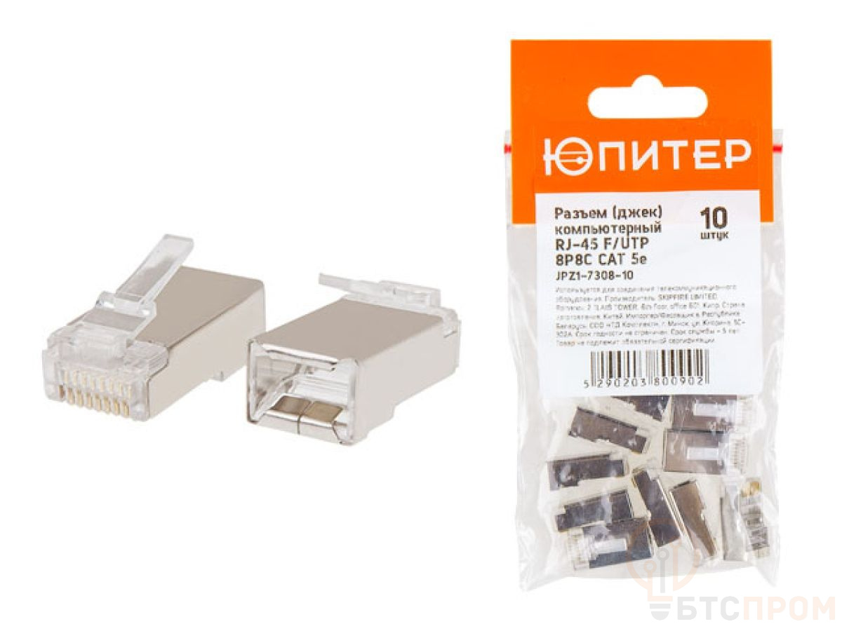 Назначение: коннекторы стандарта RJ-45 используются при организации вычислительных и локальных сетей, цифрового телевидения и др; рекомендуется использовать для опрессовки витого кабеля F/UTP;
