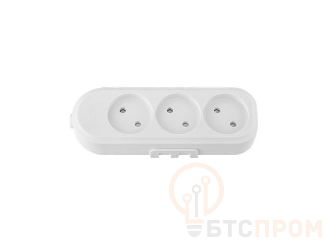 Розетка 3-ая переносная (б/з, 16А, 250В, з/ш, струезащ.) белая, BYLECTRICA (с креплением к стене) Р16-9165
