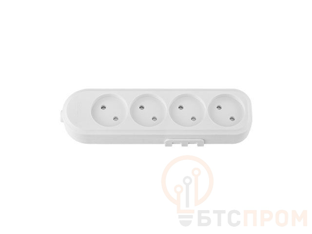 Розетка 4-ая переносная (б/з, 16А, 250В, з/ш, струезащ.) белая, BYLECTRICA (с креплениемк стене) Р16-9185