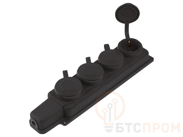 Розетка 4-ая переносная (с/з, 16А, 250В, брызг. защ.) каучук, черная Юпитер (РП16-432) (ЮПИТЕР) JP7601-04