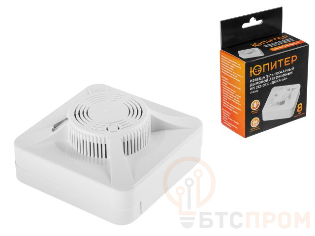 Формирует различные сигналы: Дежурный режим, Неисправность, Разряд батареи, Пожар, Оповещение, Тест. Питание извещателя осуществляется от элемента питания типа Крона, устанавливаемого со стороны задней стенки под розеткой.