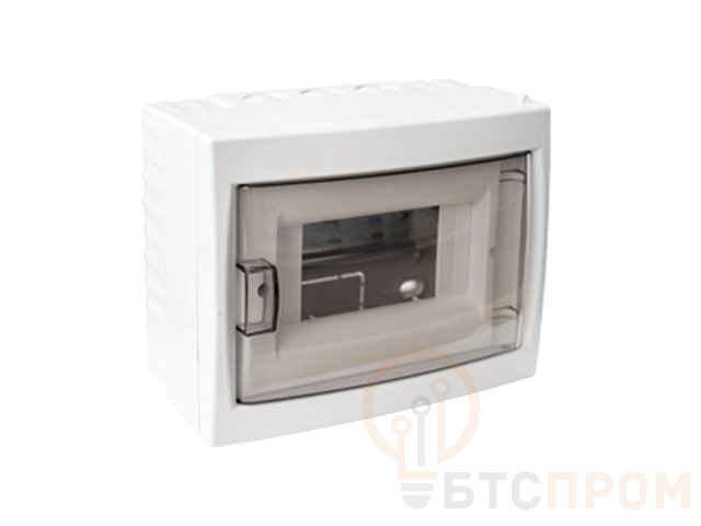 Бокс для откр.уст. с дверцей, до 6 мест, с имитацией DIN-рейки ТН-35-7,5 макс.нагрузка - 10Н, IK04, IP20, УХЛ4, K18, габ.разм.: 147,7х176х101 мм.; уст. размеры имитации дин-рейки - 27+0,2 мм