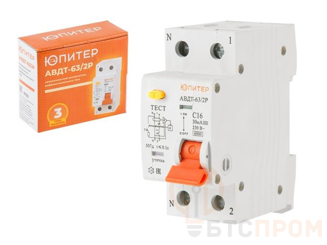 Выключатель дифференциальный автоматич. АВДТ-63/2P C32 30мА 6кА тип А ЮПИТЕР (электронный тип) JP7522-32