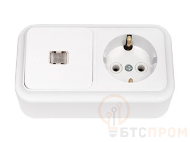 Блок выкл. 1 клав. + розетка (открытая, с/з) со световой индикацией, белая, Пралеска, BYLECTRICA В-РЦ-567