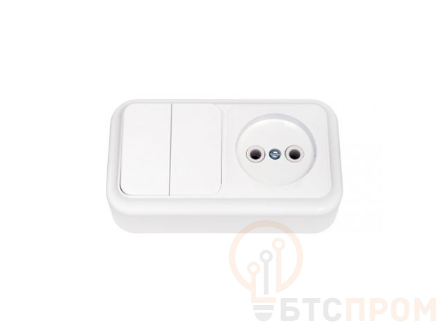 Блок выкл. 2 клав. + розетка (открытая, б/з) белая, Пралеска, Bylectrica 2В-РЦ-523