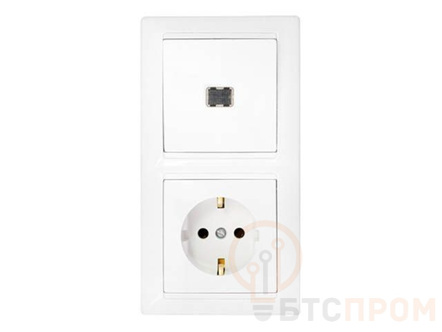 Блок выкл. 1 клав. + розетка (скрытая, с/з) со световой индикацией, белая, Стиль, BYLECTRICA В-РЦ-701