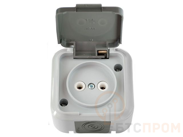 Розетка 1-ая (открытая, б/з, брызг. защ.) серая, Пралеска Аква, Bylectrica (IP54 пылебрызгозащищенные) РА16-296(03)