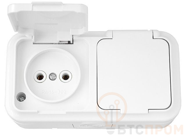 Розетка 2-ая (открытая, б/з, брызг. защ.)белая, Пралеска Аква, BYLECTRICA (IP54 пылебрызгозащищенные) РА16-302