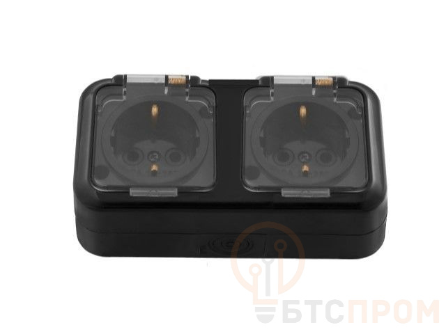 Розетка 2-ая (открытая, с/з, брызг. защ.) черная, Пралеска Аква, Bylectrica (IP54 пылебрызгозащищенные) РА16-303чер