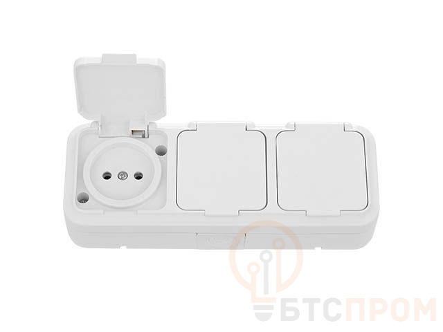 Розетка 3-ая (открытая, б/з, брызг. защ.) белая, Пралеска Аква, Bylectrica (IP54 пылебрызгозащищенные) РА16-0131
