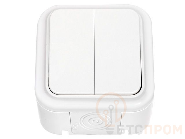 Выключатель 2 клав. (открытый, 10А, брызг. защ.) белый, Пралеска Аква, BYLECTRICA (IP54 пылебрызгозащищенные) А(6+6) 10-873