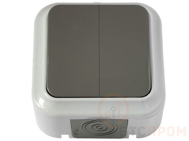 Выключатель 2 клав. (открытый, 6А, брызг. защ.) серый, Пралеска Аква, Bylectrica (IP54 пылебрызгозащищенные) А56-224(03)