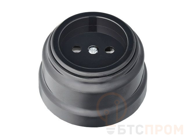 Розетка 1-ая (открытая, б/з) черная, Ретро, BYLECTRICA (без монтажной панели) РА16-0201чер фото в каталоге от BTSprom.by