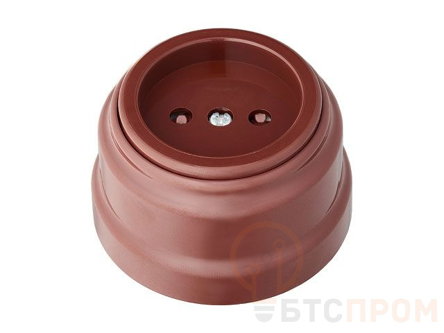Розетка 1-ая (открытая, б/з, з/ш) коричневая, Ретро, BYLECTRICA (без монтажной панели) РА16-0205кор фото в каталоге от BTSprom.by