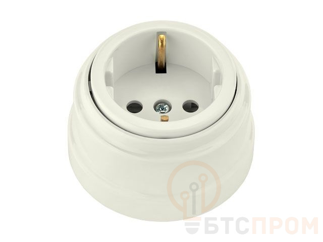 Розетка 1-ая (открытая, с/з) бежевая, Ретро, BYLECTRICA (без монтажной панели) РА16-0202беж фото в каталоге от BTSprom.by