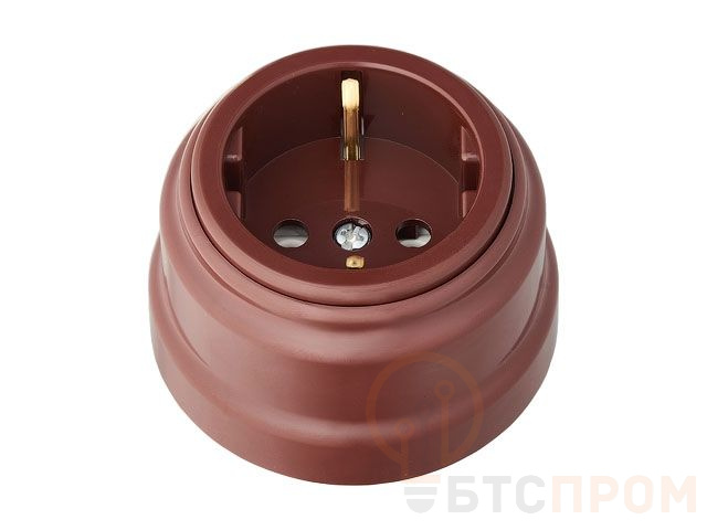 Розетка 1-ая (открытая, с/з) коричневая, Ретро, BYLECTRICA (без монтажной панели) РА16-0202кор фото в каталоге от BTSprom.by