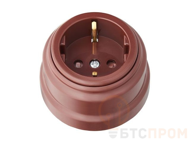 Розетка 1-ая (открытая, с/з, з/ш) коричневая, Ретро, BYLECTRICA (без монтажной панели) РА16-0206кор фото в каталоге от BTSprom.by