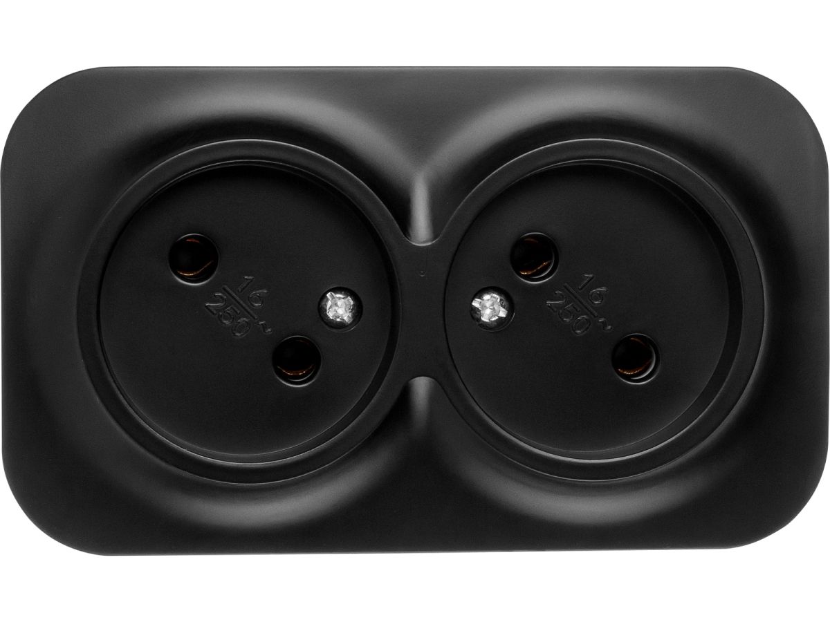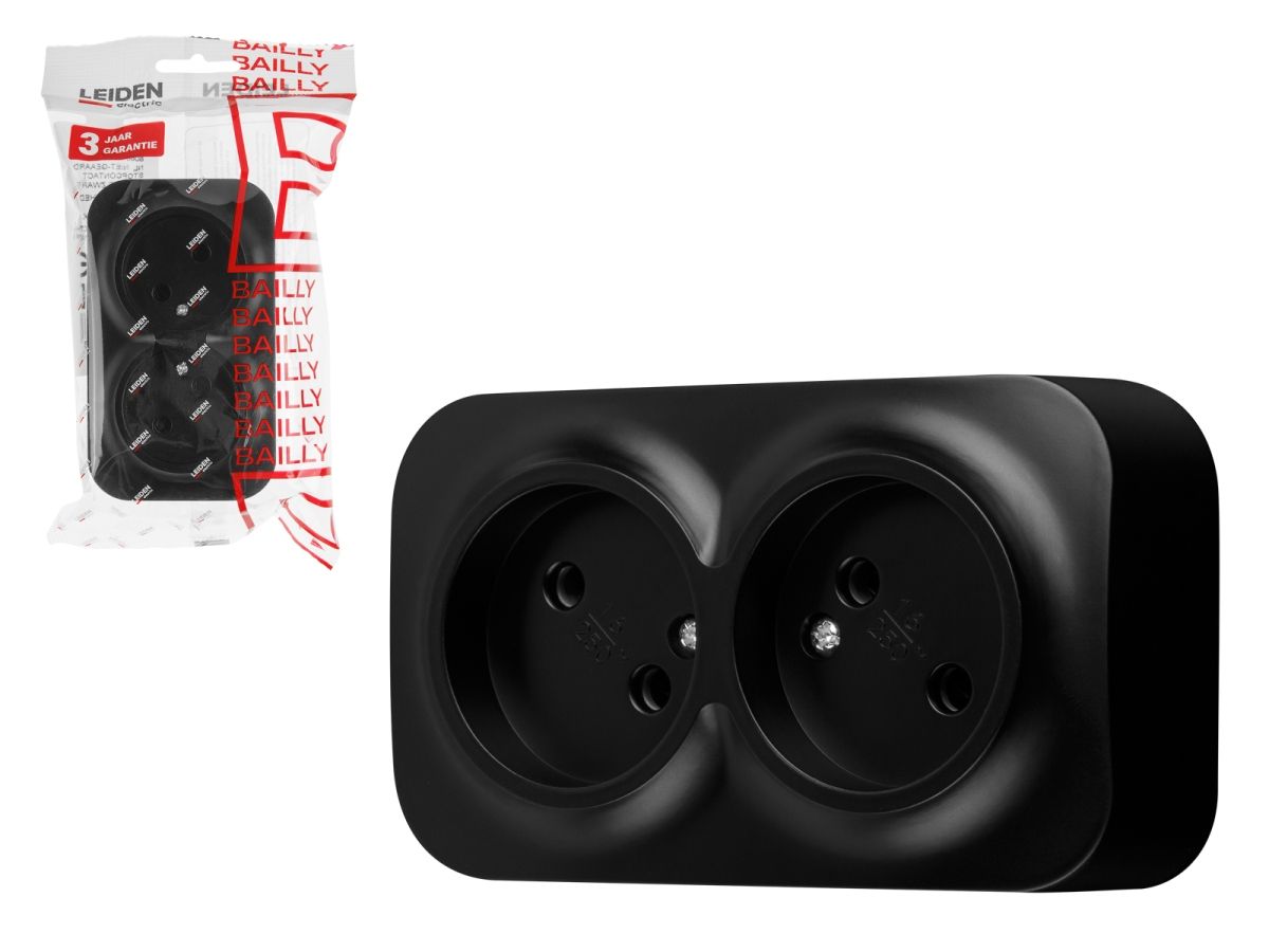 –Розетка 2-ая (открытая, б/з) черная, Bailly, LEIDEN ELECTRIC 806016