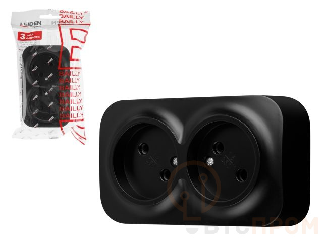 Розетка 2-ая (открытая, б/з) черная, Bailly, LEIDEN ELECTRIC 806016 фото в каталоге от BTSprom.by
