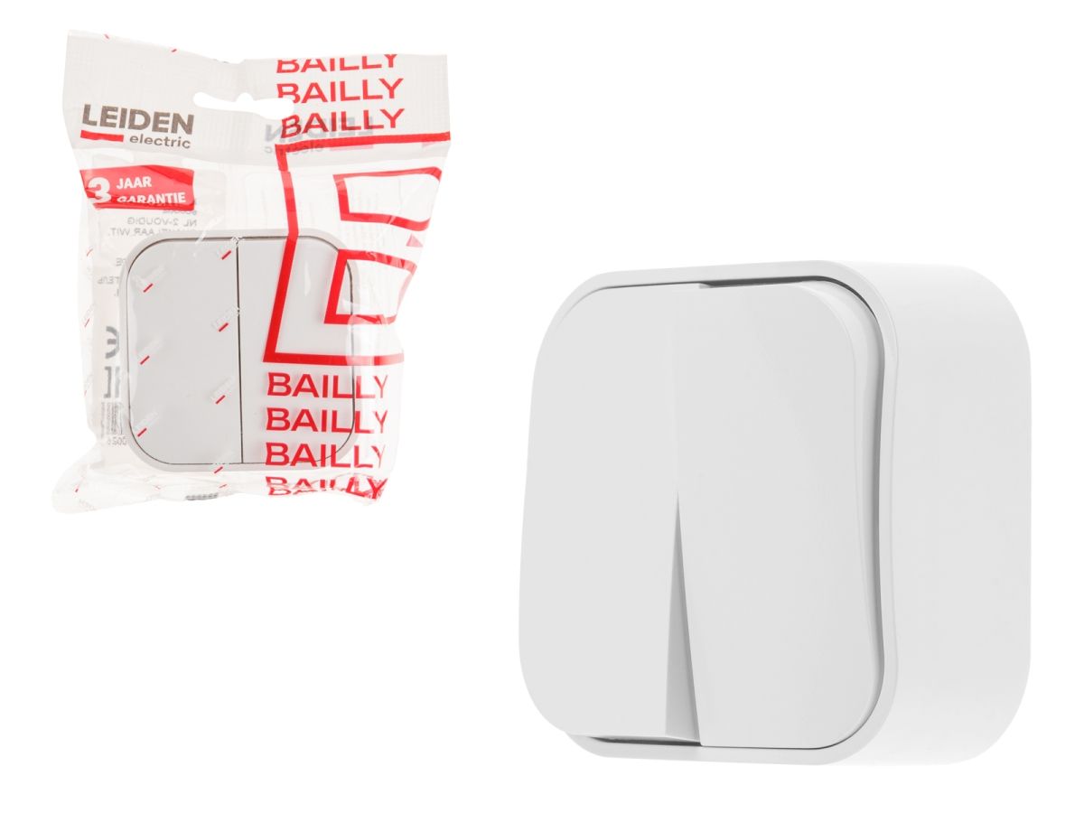 –Выключатель 2 клав. (открытый, 10А) белый, Bailly, LEIDEN ELECTRIC 806002