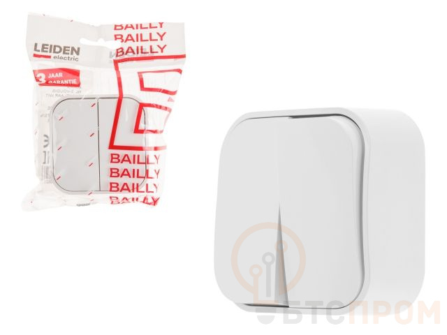 Выключатель 2 клав. (открытый, 10А) белый, Bailly, LEIDEN ELECTRIC 806002 фото в каталоге от BTSprom.by