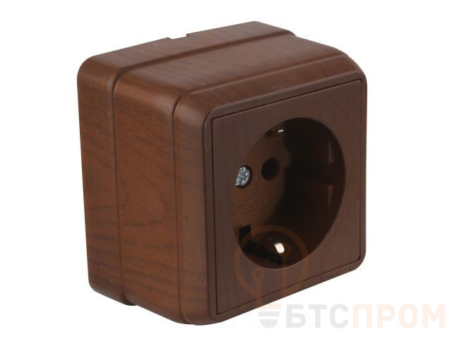 Розетка 1-ая (открытая, с/з) орех, BRON, MUTLUSAN (16 A, 250 V, IP 20) 2160 100 0257 фото в каталоге от BTSprom.by