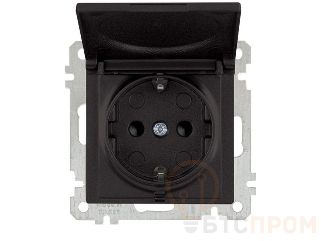 Розетка 1-ая (скрытая, без рамки, с/з, шторки, с крышкой) черная, DARIA, MUTLUSAN (16 A, 250 V, IP 20) 2100 611 0284