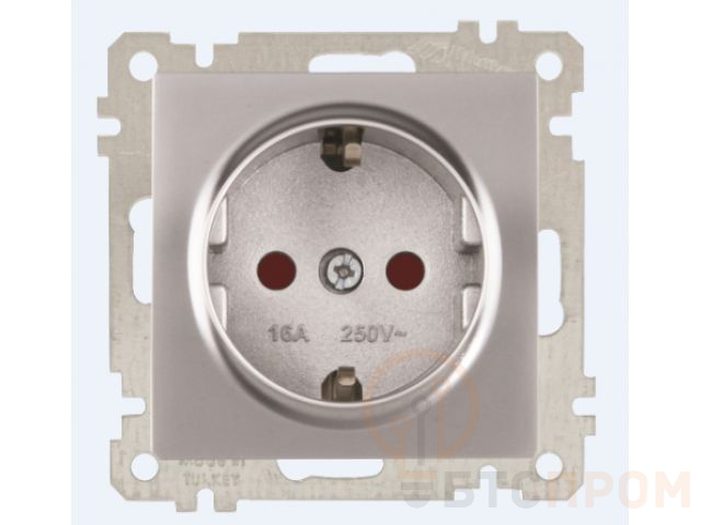 Розетка 1-ая (скрытая, без рамки, с/з, шторки) серебро, DARIA, MUTLUSAN (16 A, 250 V, IP 20) 2100 605 0282