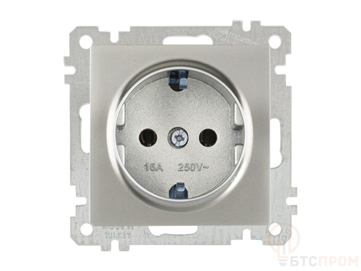 Розетка 1-ая (скрытая, без рамки, с/з) титан, DARIA, MUTLUSAN (16 A, 250 V, IP 20) 2100 600 0283 фото в каталоге от BTSprom.by