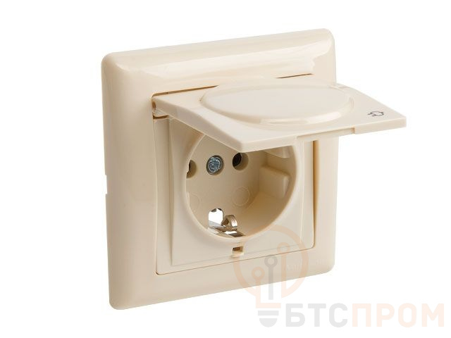 Розетка 1-ая (скрытая, с/з, с крышкой) кремовая, DARIA, MUTLUSAN (16 A, 250 V, IP 20) 2120 610 0202 фото в каталоге от BTSprom.by