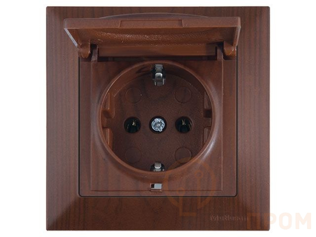Розетка 1-ая (скрытая, с/з, с крышкой) орех, DARIA, MUTLUSAN (16 A, 250 V, IP 20) 2120 610 0257 фото в каталоге от BTSprom.by