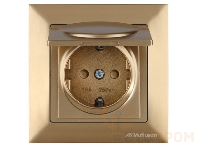 Розетка 1-ая (скрытая, с/з, шторки,с крышкой) золото, DARIA, MUTLUSAN (16 A, 250 V, IP 20) 2120 611 0280