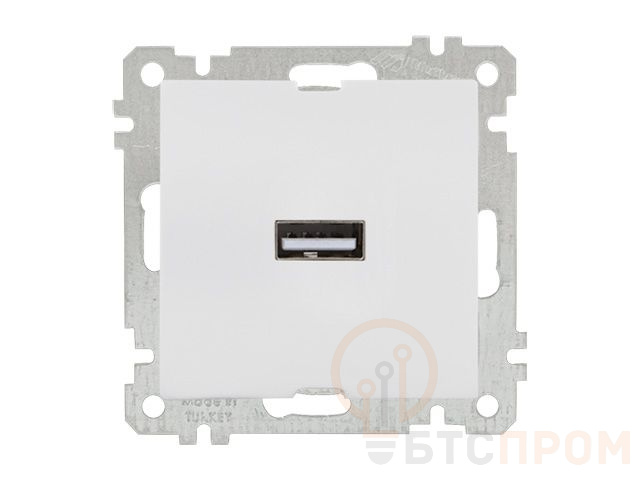 Розетка 1-ая USB (скрытая, без рамки) белая, DARIA, MUTLUSAN (USB-зарядка, 5V-2.1A) 2100 448 0101 фото в каталоге от BTSprom.by