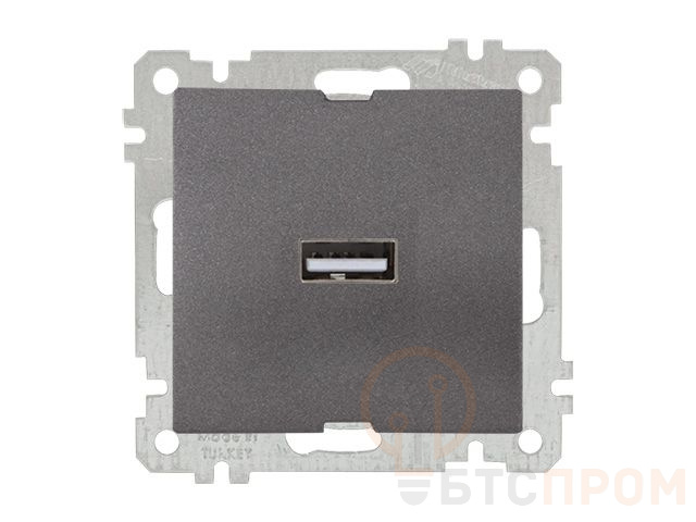 Розетка 1-ая USB (скрытая, без рамки) дымчатая, DARIA, MUTLUSAN (USB-зарядка, 5V-2.1A) 2100 448 0195