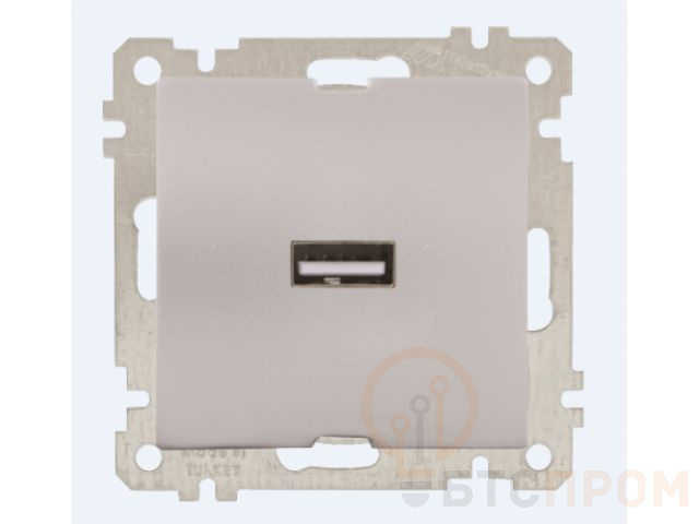 Розетка 1-ая USB (скрытая, без рамки) серебро, DARIA, MUTLUSAN (USB-зарядка, 5V-2.1A) 2100 448 0182 фото в каталоге от BTSprom.by