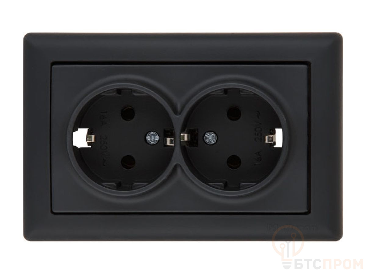 –Розетка 2-ая (скрытая, с/з, керамика) черная, DARIA, MUTLUSAN (16 A, 250 V, IP 20) 2120 200 0284