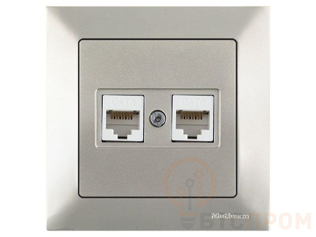Розетка компьютерная 2xRJ45 (Cat6, скрытая) титан, DARIA, MUTLUSAN ((2xRJ 45) 8-pin, соединения типа 568A или 568B) 2120 141 0183