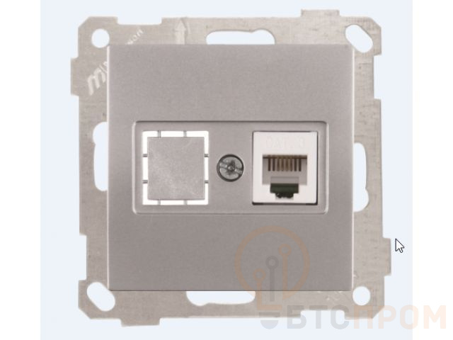 Розетка телефонная 1хRJ12 (скрытая, без рамки) серебро, DARIA, MUTLUSAN 2100 125 0182 фото в каталоге от BTSprom.by