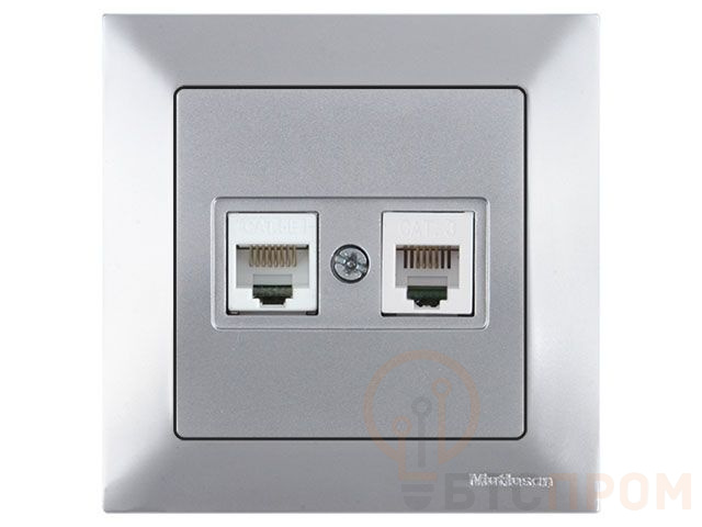 Розетка телефонная + компьютерная (RJ12+Cat5e, скрытая) серебро, DARIA, MUTLUSAN (Cat-3 (RJ 12) 4-pin + (RJ 45) 8-pin) 2120 139 0182