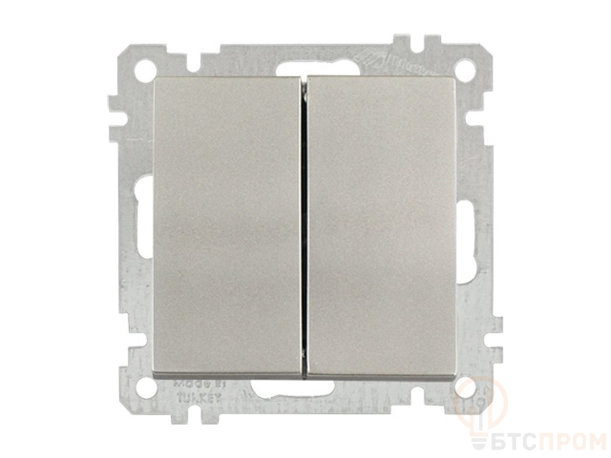 Выключатель 2-клав. (скр, б/рамки, пруж. заж) титан, CANDELA (DARIA), MUTLUSAN (10 A, 250 V, IP 20) 2100 402 0183