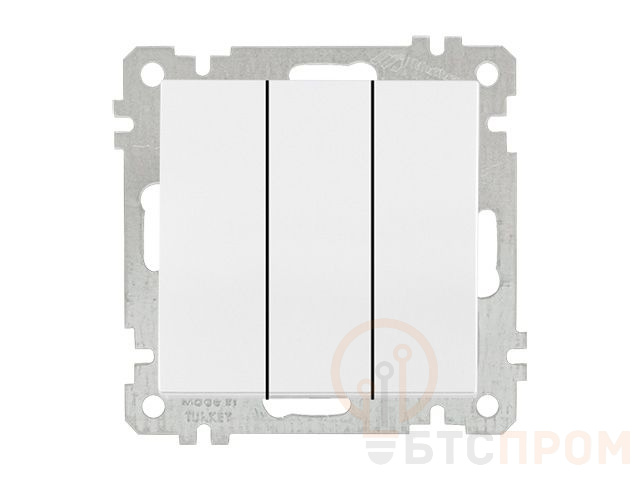 Выключатель 3-клав. (скрытый, без рамки, пруж. зажим) белый, DARIA, MUTLUSAN (10 A, 250 V, IP 20) 2100 409 0101