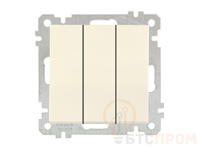 Выключатель 3-клав. (скрытый, без рамки, пруж. зажим) кремовый, DARIA, MUTLUSAN (10 A, 250 V, IP 20) 2100 409 0102