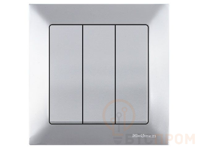 Выключатель 3-клав. (скрытый, пруж. зажим) серебро, DARIA, MUTLUSAN (10 A, 250 V, IP 20) 2120 409 0182