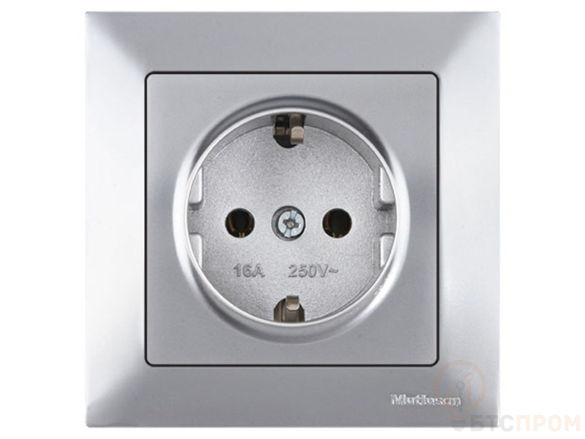 Розетка 1-ая (скрытая, с/з) серебро, DARIA, MUTLUSAN (16 A, 250 V, IP 20) 2120 600 0282 фото в каталоге от BTSprom.by