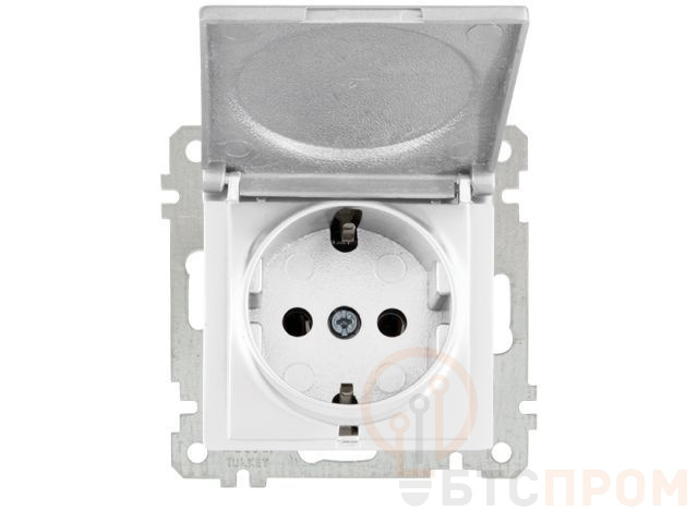 –Розетка 1-ая (скрытая, с/з, с крышкой) белая, ELITRA, MUTLUSAN (16 A, 250 V, IP 20) 2270 610 0201