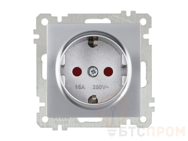 –Розетка 1-ая (скрытая, с/з, шторки) серебро, ELITRA, MUTLUSAN (16 A, 250 V, IP 20) 2270 605 0292