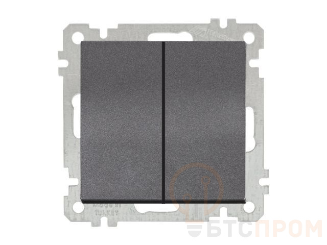 Выключатель 2-клав. (скрытый, винт. зажим) дымчатый, ELITRA, MUTLUSAN (10 A, 250 V, IP 20) 2270 402 0295
