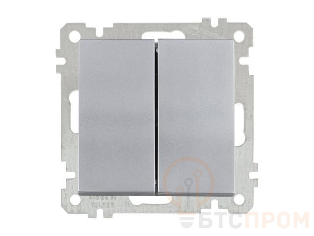 Выключатель 2-клав. (скрытый, винт. зажим) серебро, ELITRA, MUTLUSAN (10 A, 250 V, IP 20) 2270 402 0292