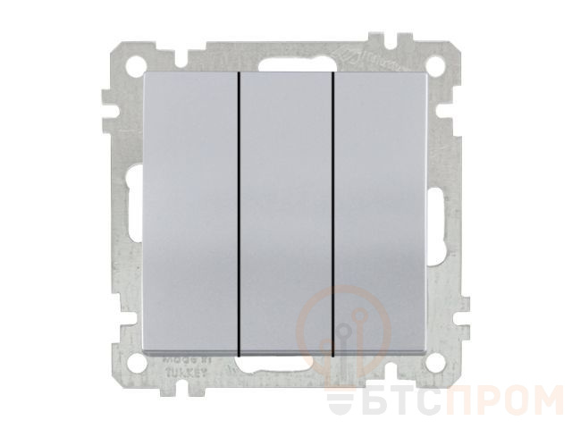 Выключатель 3-клав. (скрытый, винт. зажим) серебро, ELITRA, MUTLUSAN (10 A, 250 V, IP 20) 2270 409 0292