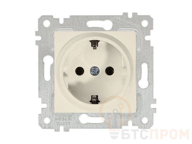 Розетка 1-ая (скрытая, без рамки, с/з) кремовая, RITA, MUTLUSAN (16 A, 250 V, IP 20) 2200 600 0202 фото в каталоге от BTSprom.by